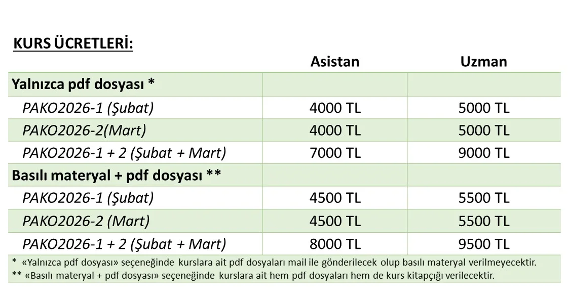 PAKO2026-1 (Şubat): 01 Şubat 2026 PAKO2026-1+2 (Şubat+Mart): 01 Şubat 2026 PAKO2026-2 (Mart): 01 Mart 2026